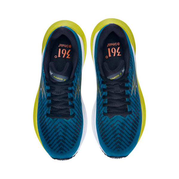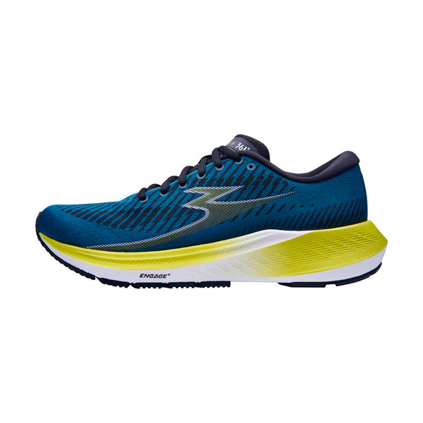 La 361° Kairos 3 è indubbiamente il modello più conosciuto (e più premiato dalle riviste di settore!) di casa 361° e coniuga il giusto equilibrio tra ammortizzazione, reattività e moderata stabilità grazie all'intersuola in ENGAGE° Foam e QU!KFOAM e alla geometria rivisitata, con un allargamento all'altezza del mesopiede.