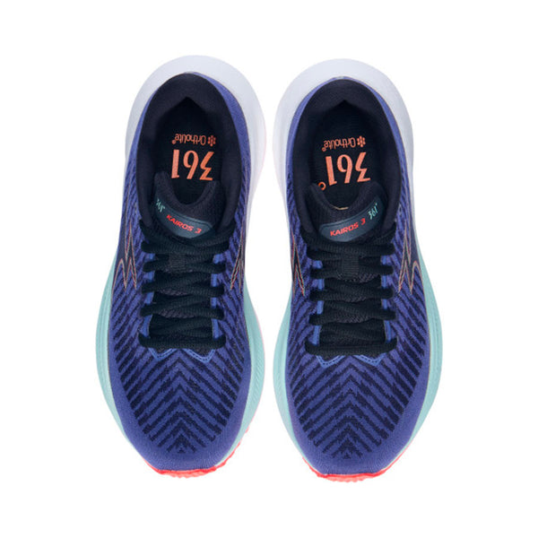 La 361° Kairos 3 è indubbiamente il modello più conosciuto (e più premiato dalle riviste di settore!) di casa 361° e coniuga il giusto equilibrio tra ammortizzazione, reattività e moderata stabilità grazie all'intersuola in ENGAGE° Foam e QU!KFOAM e alla geometria rivisitata, con un allargamento all'altezza del mesopiede.